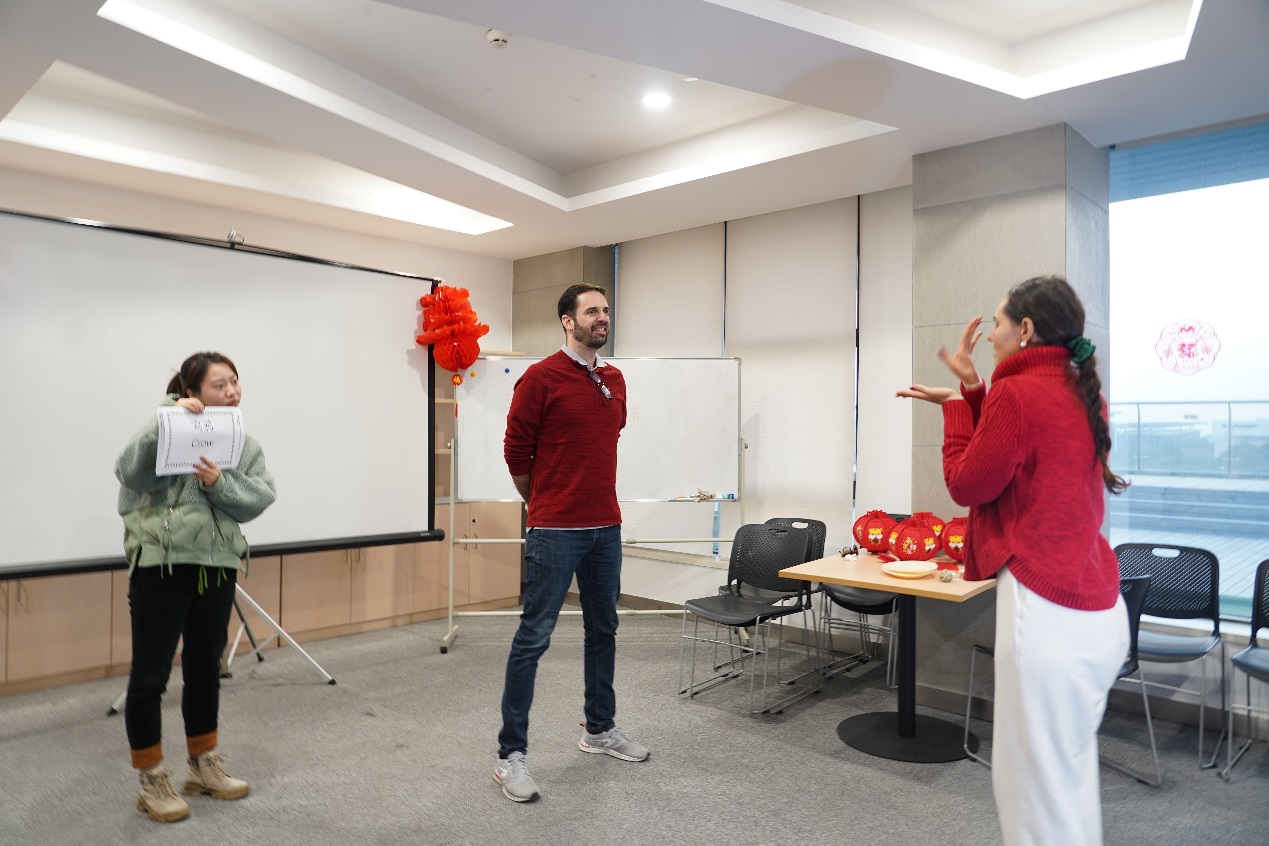 The college also prepared musical chair, a musical microphone and other interactive games for students. As participants joked with exaggerated expressions, the audience burst into laughter. During the singing activity, the students performed popular songs like "Tian Mi Mi" (甜蜜蜜), "Moon Represents My Heart"(月亮代表我的心), "Good luck"(好运来) and "Gong Xi Fa Cai"(恭喜发财) with their own understanding, highlighting the spirit of celebration.