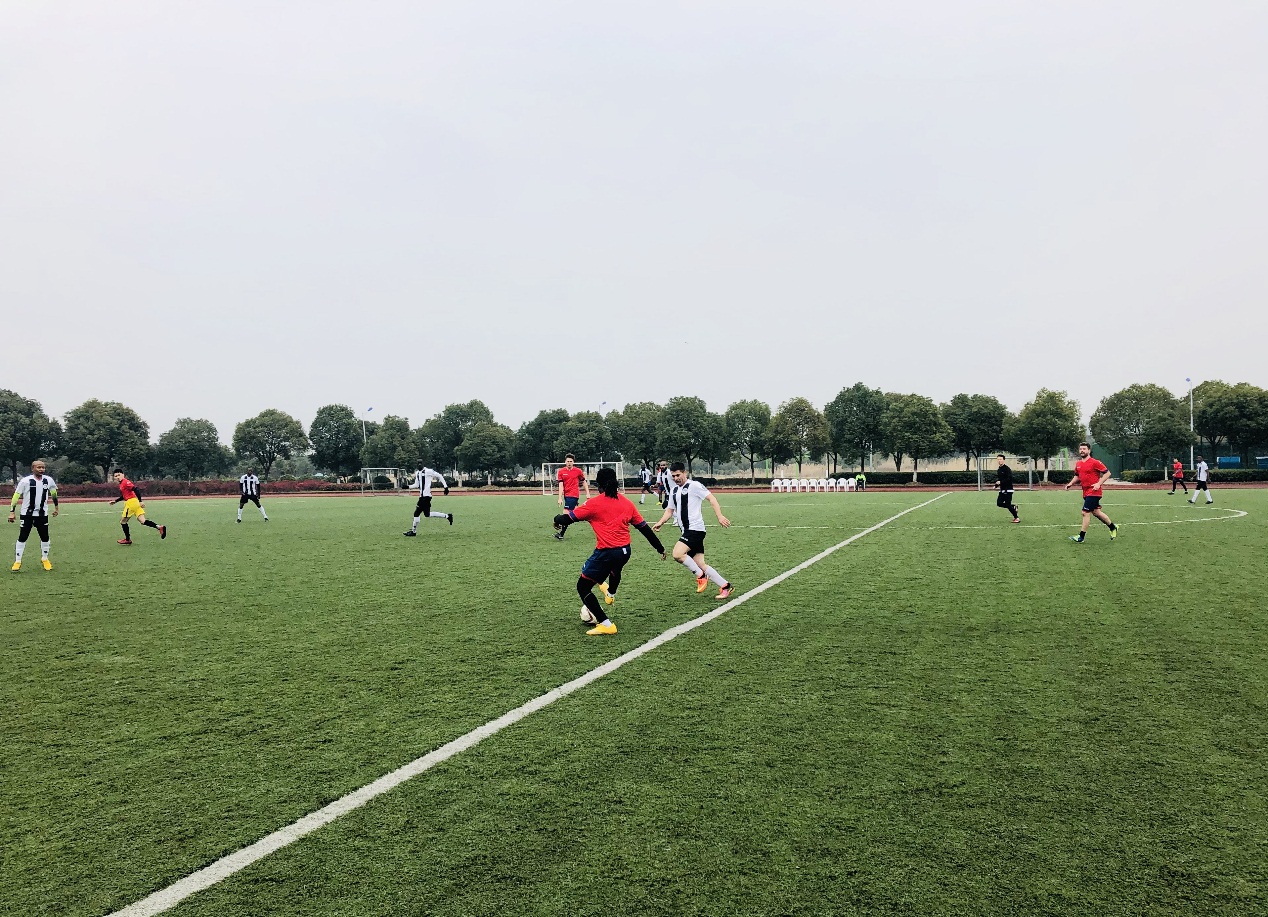 The competition officially began at two o'clock in the afternoon. “Friendship first, competition second.” At the first half of the match, players on both sides tried their best to play as steadily as they can. As both sides got familiar with each other, they played more aggressively and worked more positively together to attack and defense, showing professional techniques. The game became a more exciting one.