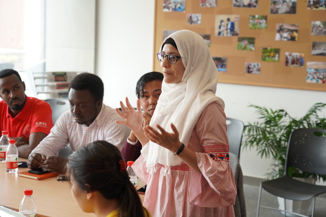 At 11.30 am, the President and the other leaders visited the teaching staff and had adiscussion with students from China, Pakistan, Dominican Republic, Russia, Somali and other countries, hosted by the Vice Dean of SRS and International School, Ms Jiang Xiaoli.