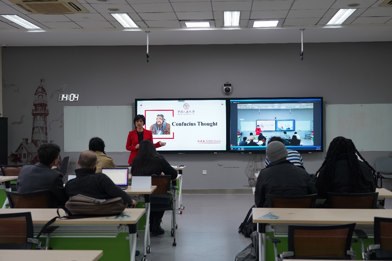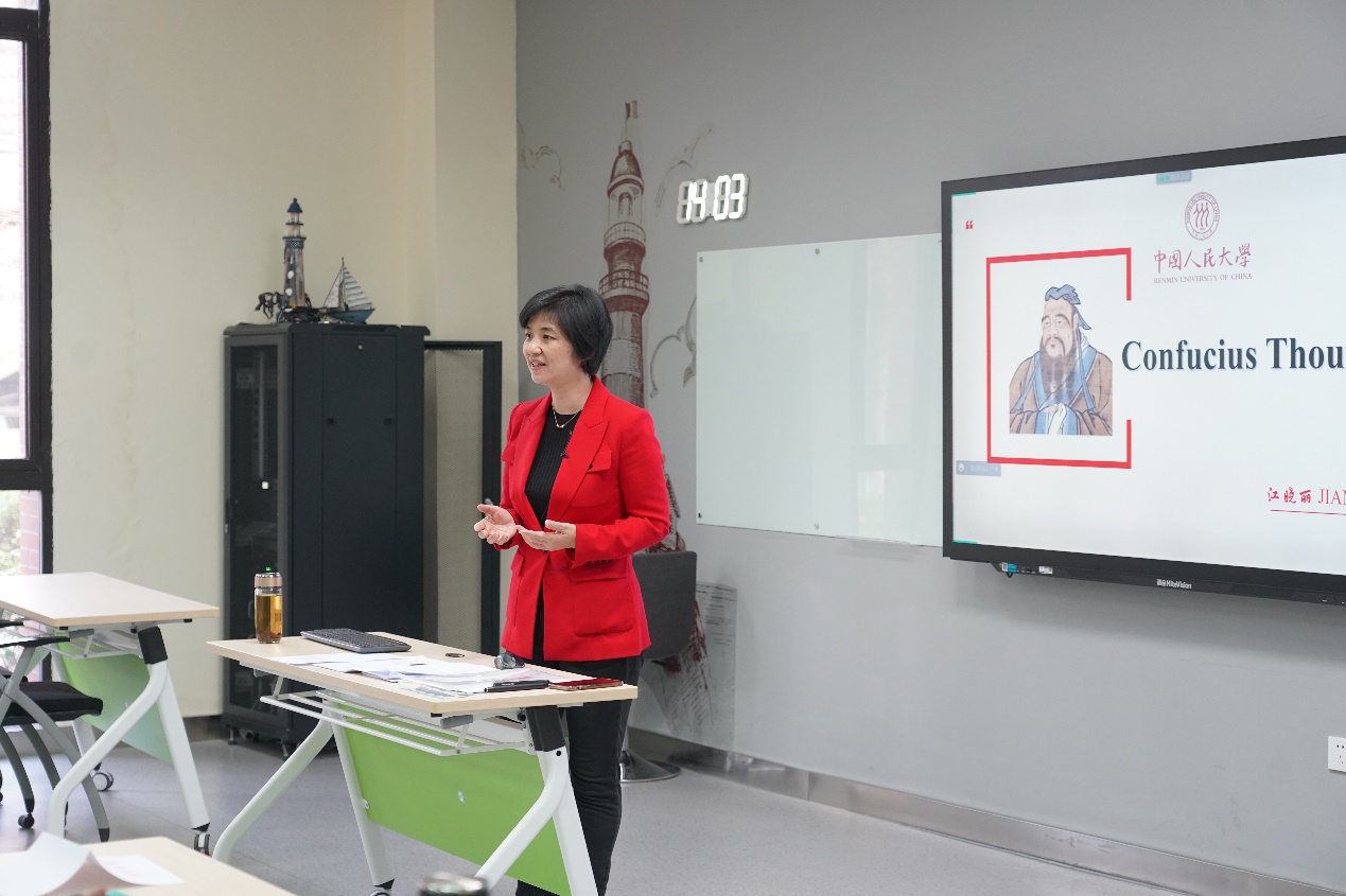 In the limited class time, Professor Jiang Xiaoli selected the representative contents of Confucianism, combined with Confucius' life, major achievements, core ideas and the comparison between China and the West, so as to help students understand the characters of Chinese culture, feel the unique charm and enhance students' interest in it.