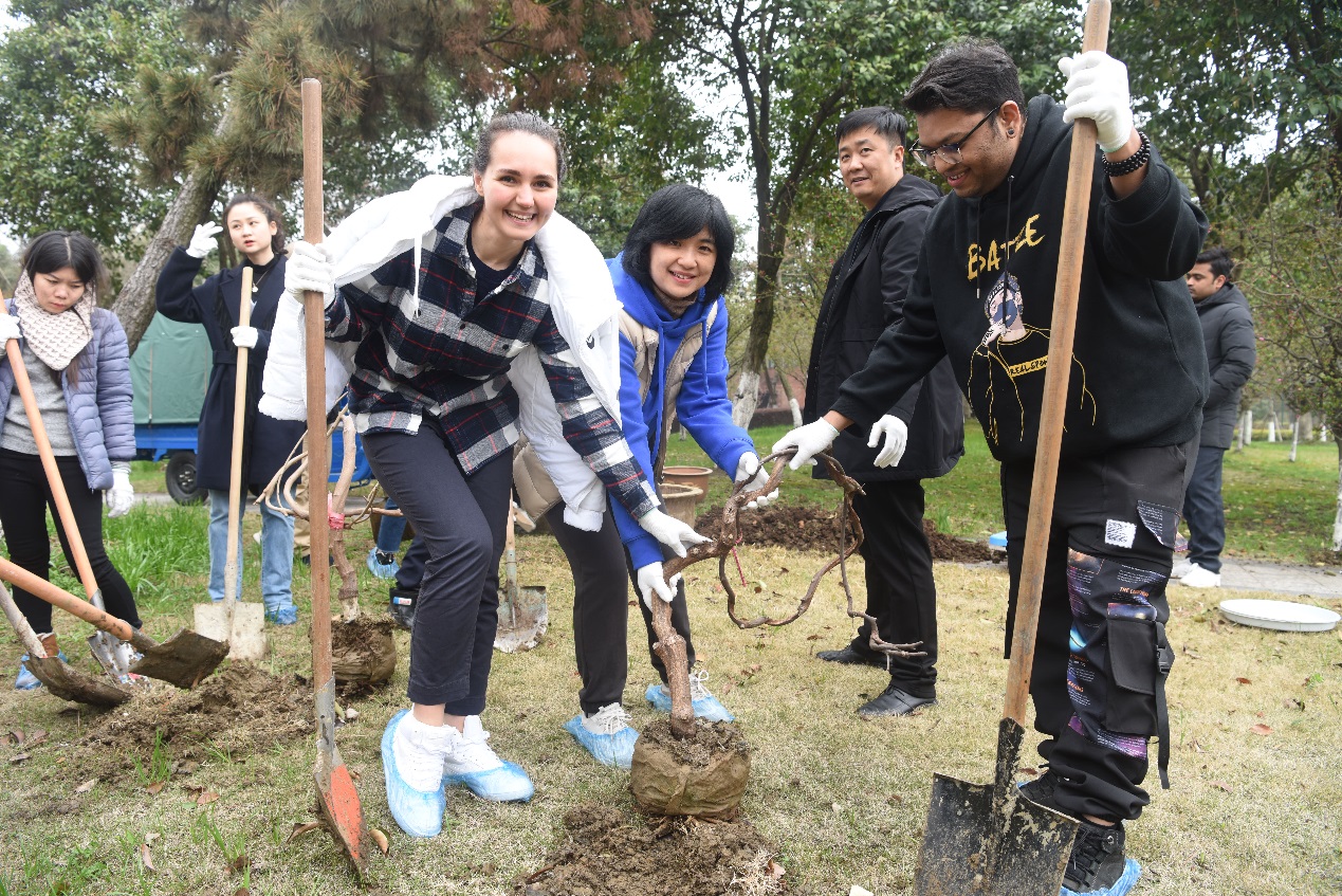 President Xi stressed that it is necessary to protect the ecological environment as well as the eyes and treat the ecological environment like life. Voluntary tree planting activities not only let students participate in and enjoy the charm of tree planting, but also improve their enthusiasm for giving back to the school and building a green campus. Through organizing various forms of voluntary work, we hope to promote students from all countries to actively participate in the construction of global ecological civilization, and become an participant, contributor and leader in the construction of global ecological civilization.