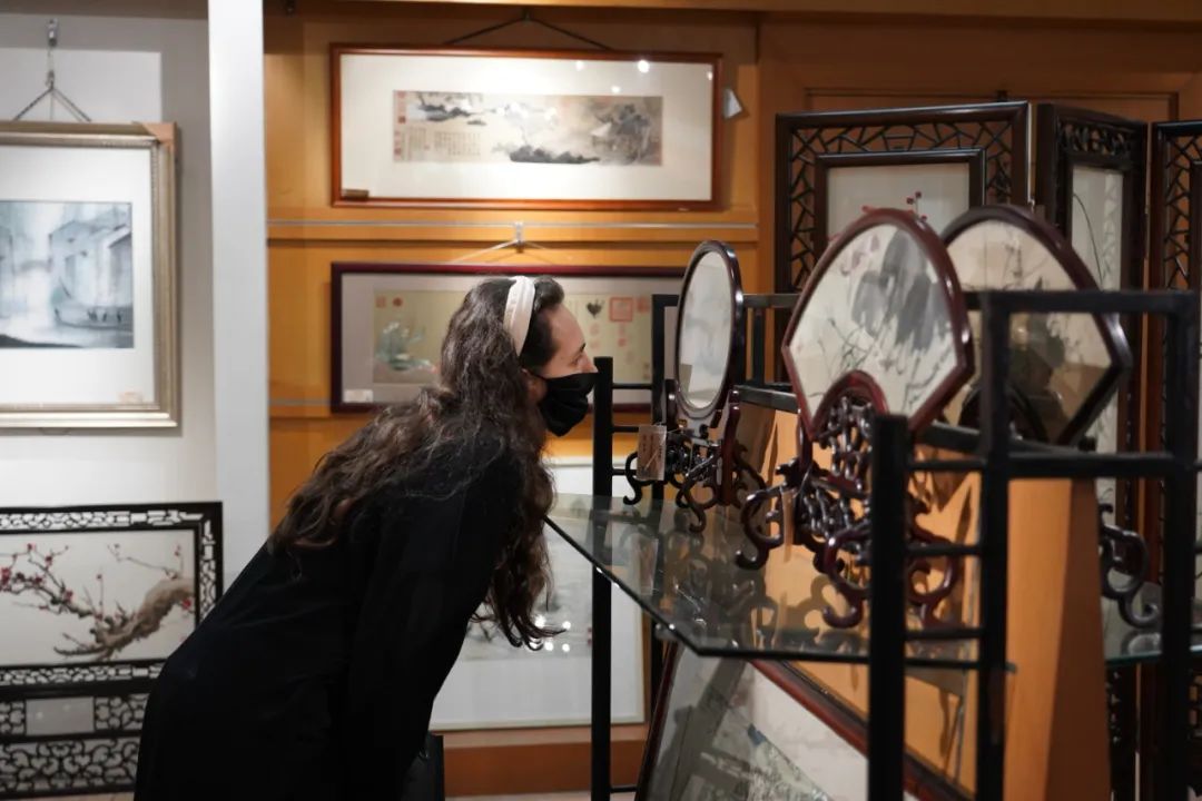 In the embroidery studio in the museum, the students cherished the meticulous and complicated production process of embroidery works and the exquisite embroidery artworks up close. They carefully observed Suzhou embroidery artists gently twisting and turning, carefully working their needles, and gradually, a beautiful picture appeared in front of their eyes.
