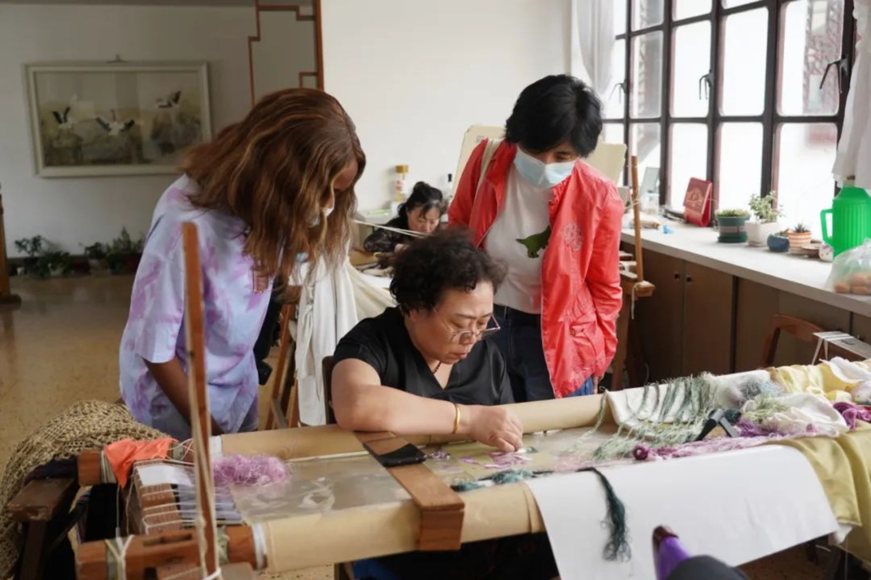 Entering the Suzhou Embroidery Research Institute, the students set-off on a cultural journey about China's intangible cultural heritage. The predecessor of the Suzhou Embroidery Research Institute was the embroidery production group of the Folk Art Research Group of the Suzhou Federation of Literary and Art Circles established in March 1954, which brought together the top embroidery masters in the country. For more than half a century, Suzhou Embroidery Research Institute has cultivated hundreds of embroidery art masters and experts for the country, and created as well as innovated more than 200 kinds of embroidery techniques. The development of the field of embroidery has made outstanding contributions. Among the first to fifth national arts and crafts masters in China, a total of 12 Suzhou embroidery industry masters were selected, of which 8 were from Suzhou Embroidery Research Institute.
