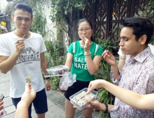 Luckily, we walked to the food street just in time and ate some delicious snacks. I do not have the name but a picture speaks more than a thousand words: