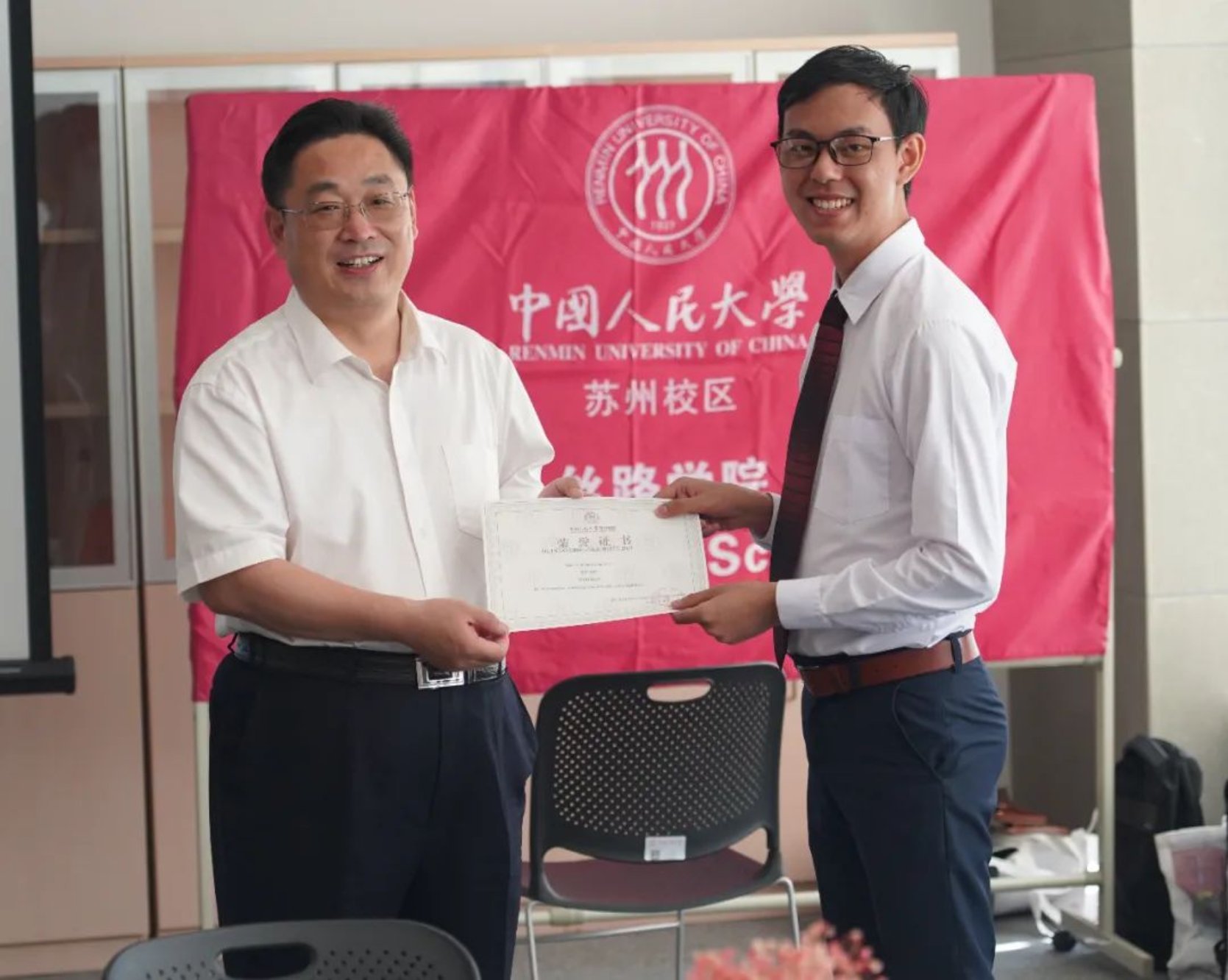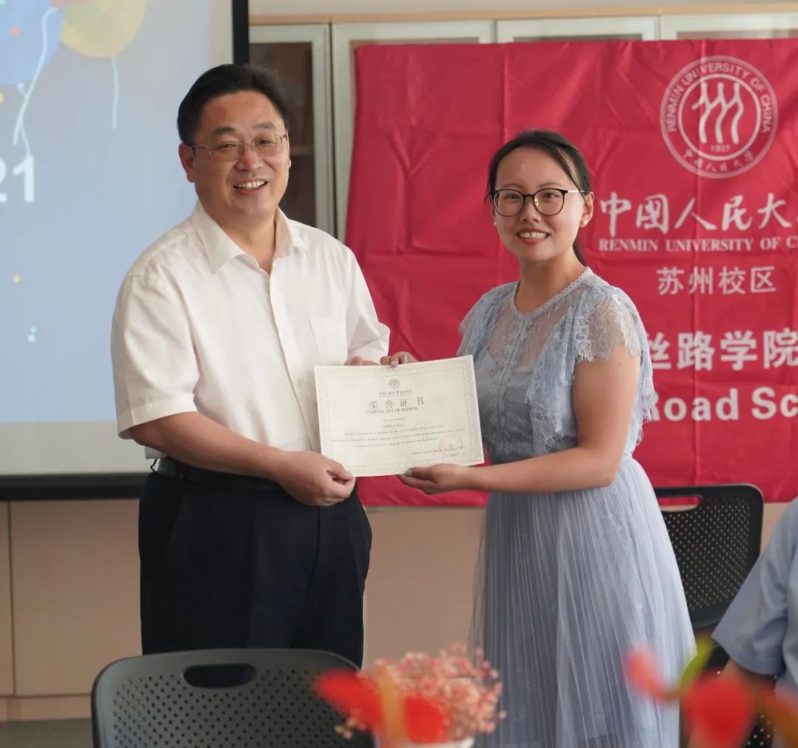 Zhu Xinkai, Deputy President of Renmin University of China and Executive Dean of SRS, Li Jiugao, Dean of the International College, Dean of the Sino-French Institute, and DeputyDean of SRS Fang Weiwei, Secretary of the Party Committee of Suzhou Campus, Wang Hongli, Director of General Affairs Office of SRS and Executive Director of Scientific Research and Graduate Department, Zhu Fengyu, Director of Teaching and Student Affairs Department of SRS, etc. attended the farewell party.