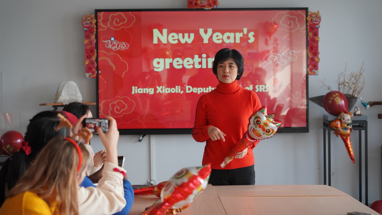 The New Year Celebration of Silk Road School(SRS)was held in Student Activity Room. Professor Jiang Xiaoli, Deputy Dean of SRS, attended the event and delivered a speech, wishing the students a smooth study and happy life in the new year.